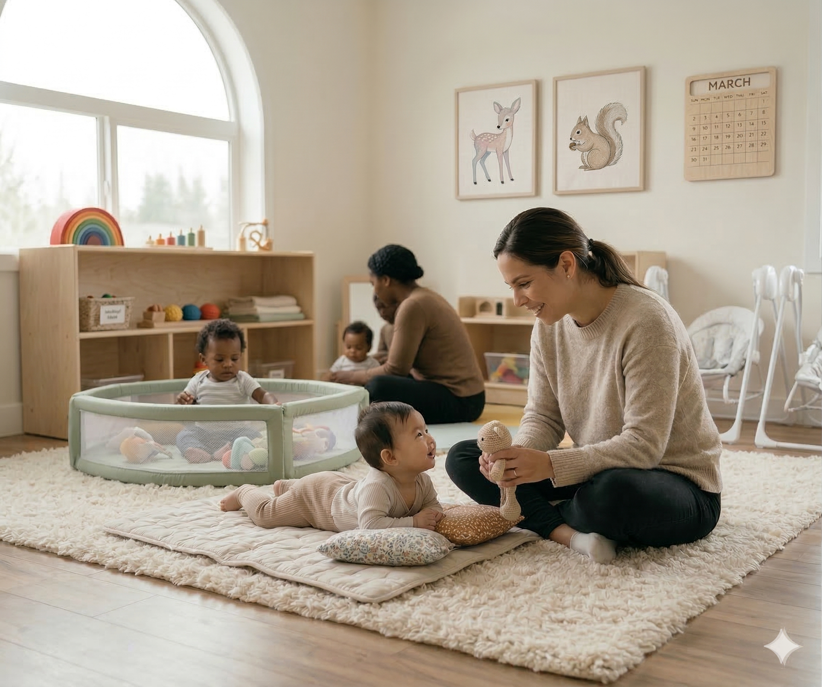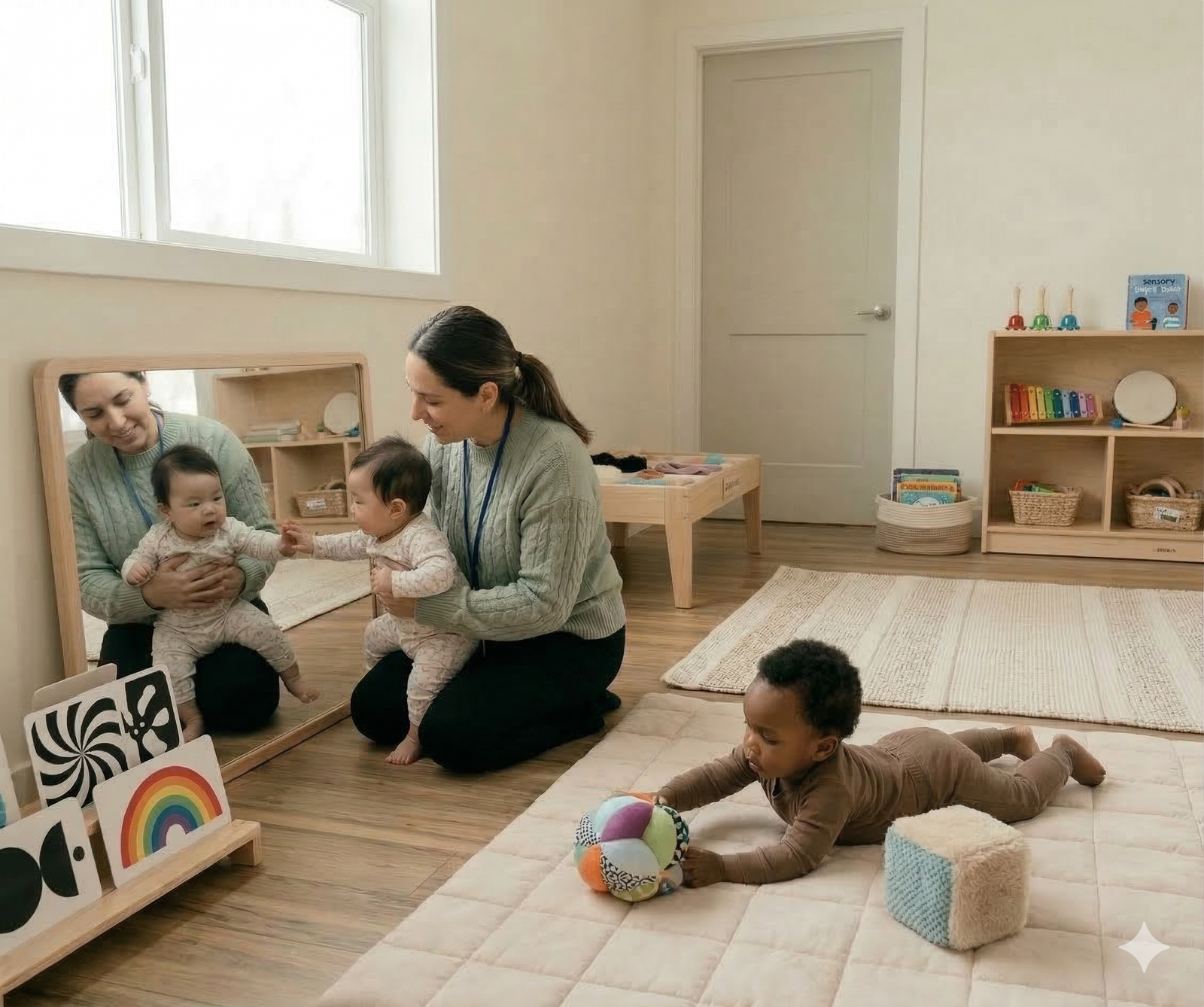 Choosing infant care is one of the most important decisions a family can make. At our daycare center, we understand that parents are not just looking for infant childcare near me, they are looking for a place that feels like an extension of home. The room is designed for babies with age-appropriate furnishings, soft mats, sanitized toys, and designated areas for feeding, sleeping and play. We are proud to provide a low child-to-teacher ratio of 1:4, ensuring that every infant receives personalized care, attention, and comfort throughout the day. This low ratio helps build strong bonds between caregivers and infants while supporting healthy emotional and developmental growth. Our Infant Room is designed specifically for babies, meeting and exceeding all New Jersey state licensing and childcare safety requirements.